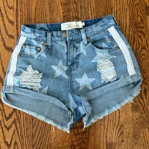 Vintage Havana Star Print Distressed High Rise Denim Shorts Women’s Size 26