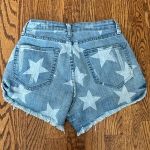 Vintage Havana shorts, distressed denim shorts, star print jean shorts, frayed hem shorts, festival outfit, patriotic denim, casual summer shorts, USA theme shorts, 4th of July outfit, high rise jean shorts, vintage inspired denim, women’s size 26 shorts, boho summer style