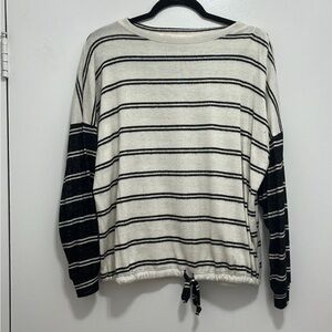 Black and white/cream striped sweater, super soft and Adjustable cinch tie