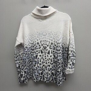 Vintage Havana Sweater Womens Small White Gray Cowl Neck Leopard Ombre Pullover