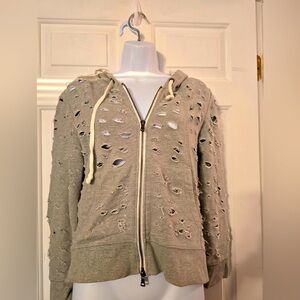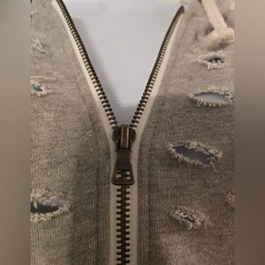 Vintage Havana Woman’s Gray Distressed Hoodie Size Small Dual Zipper 100% Cotton