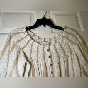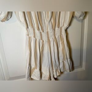 Vintage Havana Woman’s Romper Ivory & Tan Striped Size Medium Off Shoulder Or On