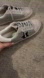 Chic sneakers with a bold black star. Gray and white tones for versatile style. Ideal for casual outings.