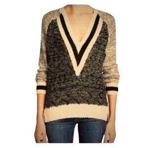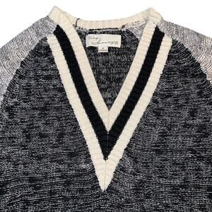 Gray & Cream V-Neck Knit Sweater Vintage Havana