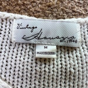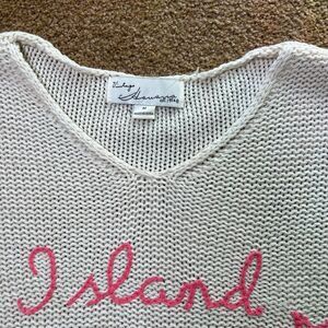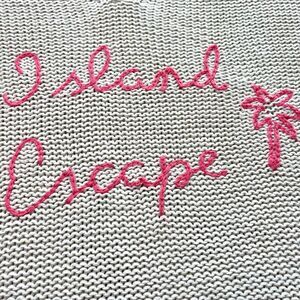 Vintage Havana Womens White Pink Island Escape Embroidered Knit Sweater Medium