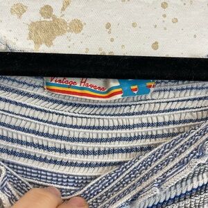 Vintage Havana girl’s jumpsuit. Blue and white striped with slit at legs.