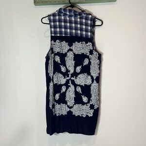 Vintage Havana plaid paisley sleeveless tunic button-down shirt women’s medium