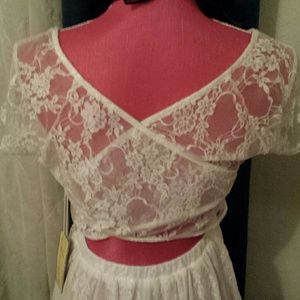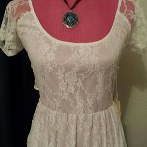 NWT, Gorgeous 'Vintage Havana' brand White Lace Xcross back Midriff Feminine Dress, so Adorable with the crisscross back lace showing just a bit of your summer tan back for that tiny bit of xtra sexy look! Has a bit of stretch for comfort. New!