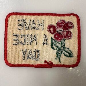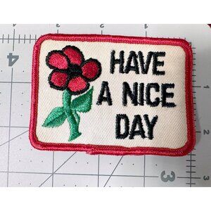 Vintage “Have a Nice Day” Patch Embroidered Red Flower Power 70s Hippie