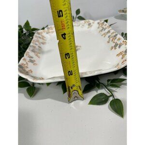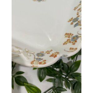 This antique English serving platter features a delicate floral pattern with gold trim. Ideal for adding elegance to dining settings.