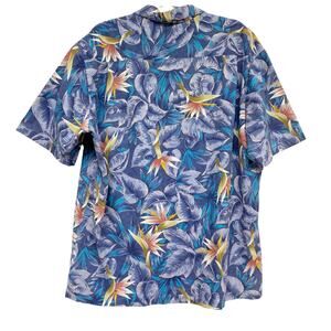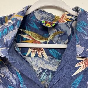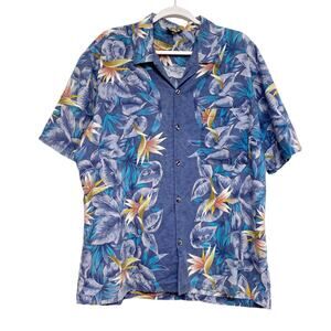 Vintage Hawaii Blues Mens Size XL Tropical Floral Print Short Sleeve Button Up