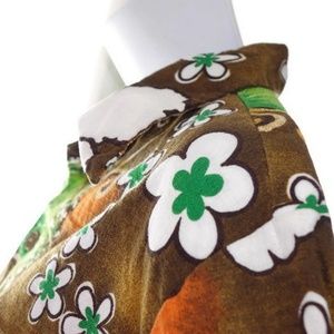 Vintage Hawaiian Barkcloth Shirt Tiki Hibiscus
