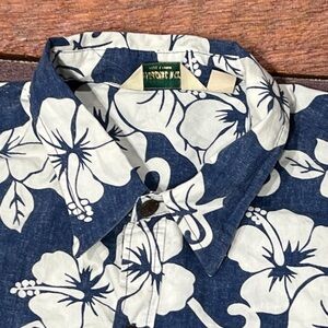 Vintage Hawaiian Blue Floral Button Down Short Sleeve Aloha Hawaii Shirt Mens