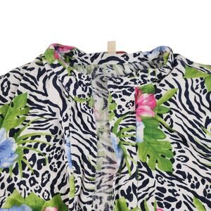 Vintage Hawaiian Cardigan Womens PL Large Petite 100% Linin Hibiscus Zebra Print