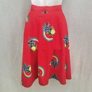 Vintage Hawaiian Christmas Swing Skirt Red Flowers Rainbows 60s-70s Medium