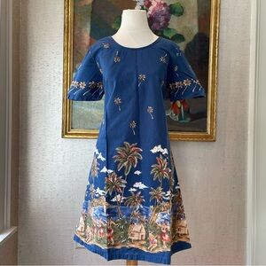 vintage cotton Hawaiian dress. beautiful fabric pattern and very lightweight. pocket detail on right side