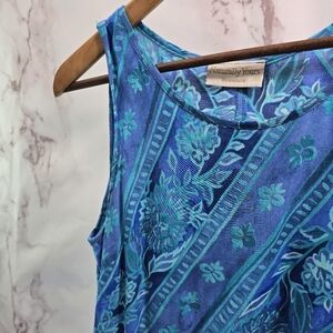 Vintage Hawaiian Dress Women Medium Blue Purple Midi Maxi Floral Tank 90s