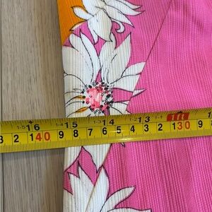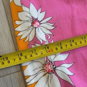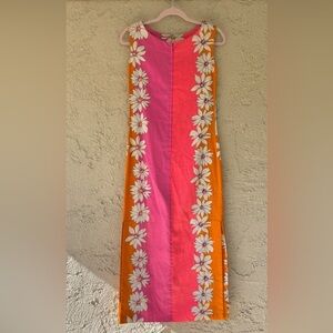 Vintage Hawaiian Homemade Barkcloth Floral Pink Orange Maxi Neon Hippie Psychedelic Dress