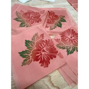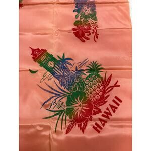 The color is the tablecloth, the napkins match but my camera could not get the color correct. Looking for vintage Hawaiiana with true island history behind it? I lived in Hawaii in the 1970s and first discovered these shiny souvenir tablecloths in Waikiki—this set is the same nostalgic style, featuring a glossy satin-finish map of the Hawaiian Islands, rainbow hibiscus, and classic Aloha graphics. The tablecloth and matching napkins are vintage new old stock, never used, with those old-fashioned raw edges that give a charming, retro tiki-bar, grandmillennial, coastal-grandma vibe.