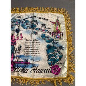 This vintage pillow cover features an intricate Hawaiian Islands design, complete with a heartfelt poem. The vibrant graphics and fringe detail add a touch of nostalgia to any collection. Ideal for collectors or as a unique decor piece.