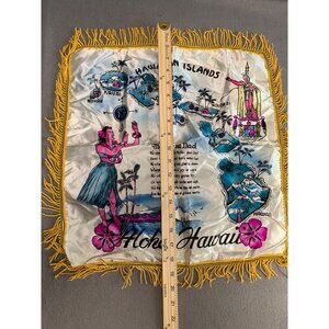 Vintage Hawaiian Islands Souvenir Pillow Cover w/ Fringe