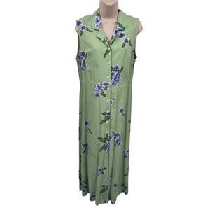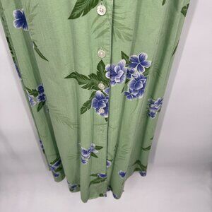 Vintage Hawaiian Maxi Dress Womens 12 Rayon Green Purple Hibiscus Print Beachy