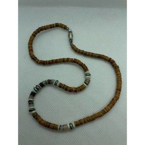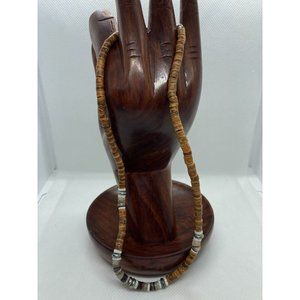 Vintage Hawaiian Multi Shell Coconut Puka Shell Choker Necklace 90s Silver Tone