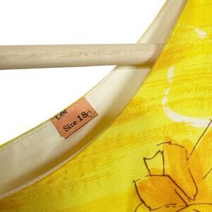 Vintage Hawaiian Print Dress Women's Size 18C Yellow Floral Boho Style Aloha Dre