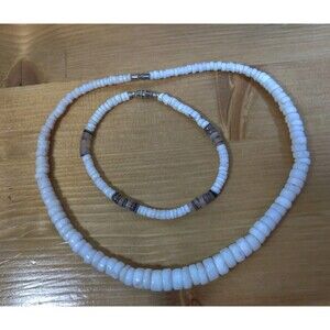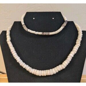 Vintage Hawaiian Puka Shell Necklace Choker 17” & 9" Bracelet Boho Surfer