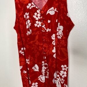 Vintage Hawaiian Red Floral Dress Small Jamie Brooke retro