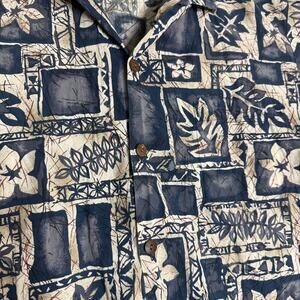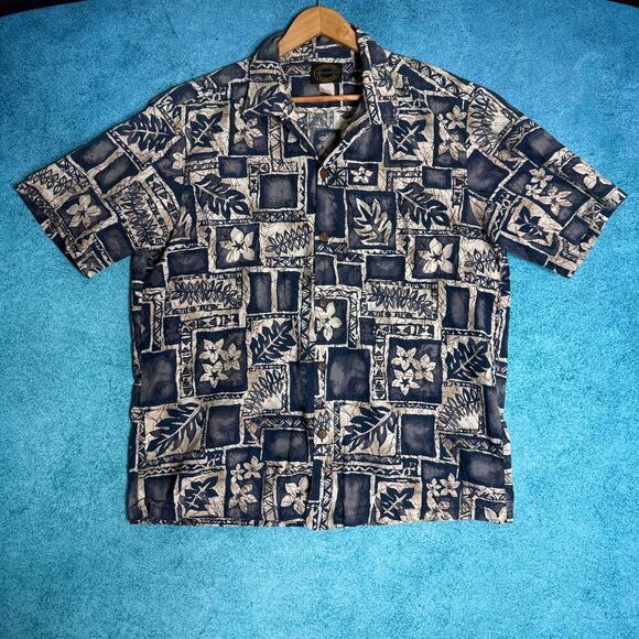 Vintage Hawaiian Reserve Shirt Floral Blue Cream Tan Aloha Button Up L