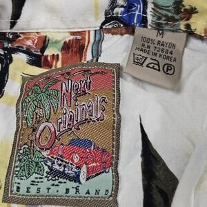 Vintage Hawaiian Shirt Classic Cars Statue of Liberty Medium Next Originals Auto
