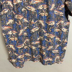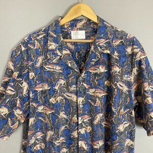 Vintage Hawaiian Shirt Giant Fish Men Scene Short Sleeve Unique Print Button-Up