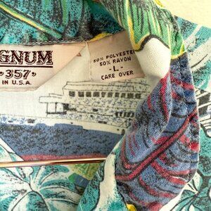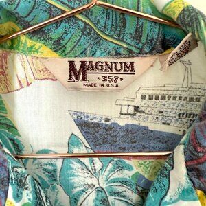 Vintage Hawaiian Shirt, Magnum Mens L Button Up Palm Tree Y2K Surfing Tropical