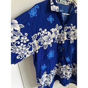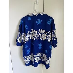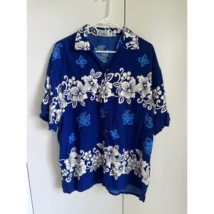 Vintage Hawaiian Shirt Mens Size XLarge Blue White Hibiscus vacation Cruisewear