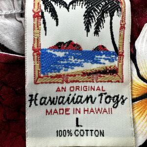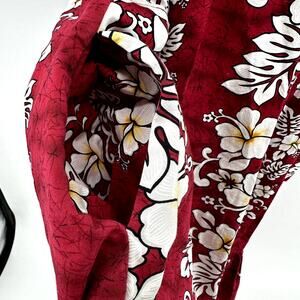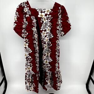 Vintage Hawaiian Togs Midi Dress Floral Puff Sleeve Aloha Ruffle Red White L