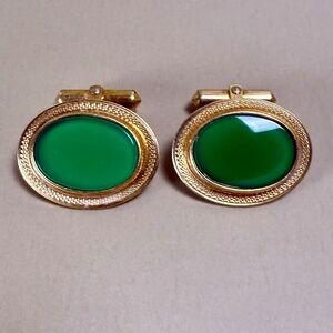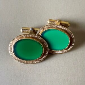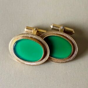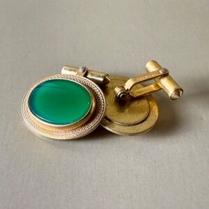 Vintage Hayward Gold-Filled Cufflinks with Green Cabochon Stone | Mid-Century