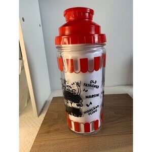 This Vintage Hazel 3 Men red glass cocktail shaker with a plastic lid is a perfect addition to any vintage collection. At 9.5 inches tall, it adds a dash of old-school charm to your home bar.