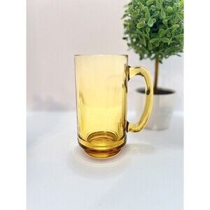 These Mid-Century Hazel Atlas glass beer mugs have the classic D-Shaped handle with a slightly raised bottom and are golden amber in color.