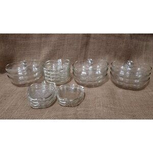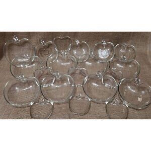 This is a gorgeous 20-PIece Vintage 1960s Hazel Atlas Apple Shaped Clear Glass Dessert or Dinner Bowl & Saucer Set.