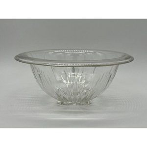 Vintage Hazel Atlas Aurora Clear Ribbed Glass Bowl Square Base Rolled Rim 8 1/2”.