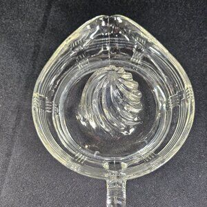 Rare Find: This item is hard to come by. A vintage Hazel Atlas. Clear ribbed, criss-cross pattern glass, large citrus reamer/juicer. This juicer has the Crisscross pattern, a popular design from the Depression era. These juicers were made by the Hazel Atlas Glass Company, a prominent American manufacturer at the time. Circa 1930s, 1950s. Crafted with a handle for ease of use. Not only functional, but a delightful addition to your kitchen or collection. Size 8 inches wide, 6 inches long, 3.5 inches high. In nice vintage condition with light wear only. Non-smoking pit free home.
