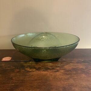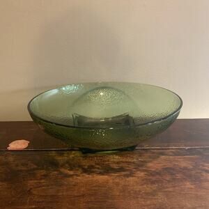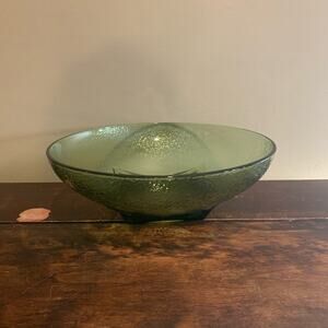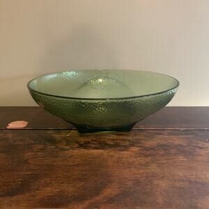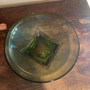 Vintage Hazel Atlas Colony pebblestone Avocado Green Glass Square Base Bowl