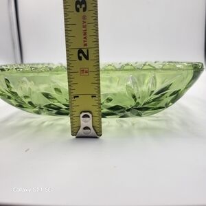 Lovely avocado green cut glass candy dish.