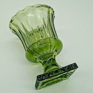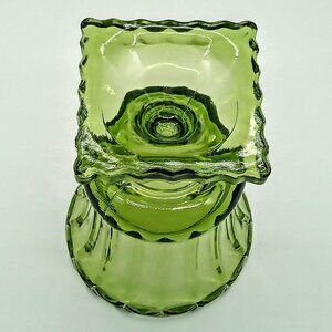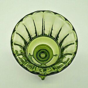 Vintage Hazel Atlas Green Glass Scallop Square Base Footed Dish