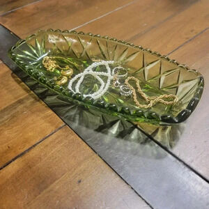 Vintage Hazel Atlas Green Oblong Glass Dish Cut Green Trinket Fish Tray Decor