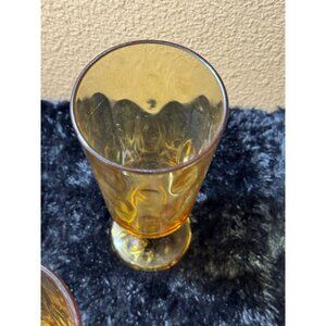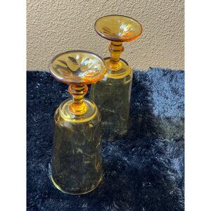 Vintage Hazel Atlas Lyric Gold Harvest Amber Optic Stemmed Glasses Set of 2