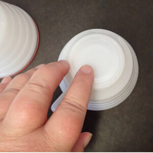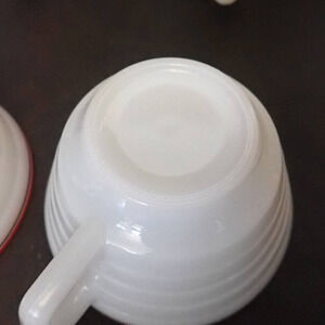 Vintage Hazel Atlas Moderntone Platonite White Ribbed 1 Cup with Red and Black