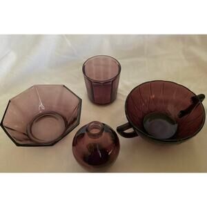 Vintage Hazel Atlas Moroccan Amethyst Glass. Bowl-Vase-Tumbler and Handled Dish