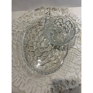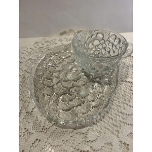 Vintage Hazel Atlas Orchard Crystal Glass Grape Sip And Snack Plate And Cup